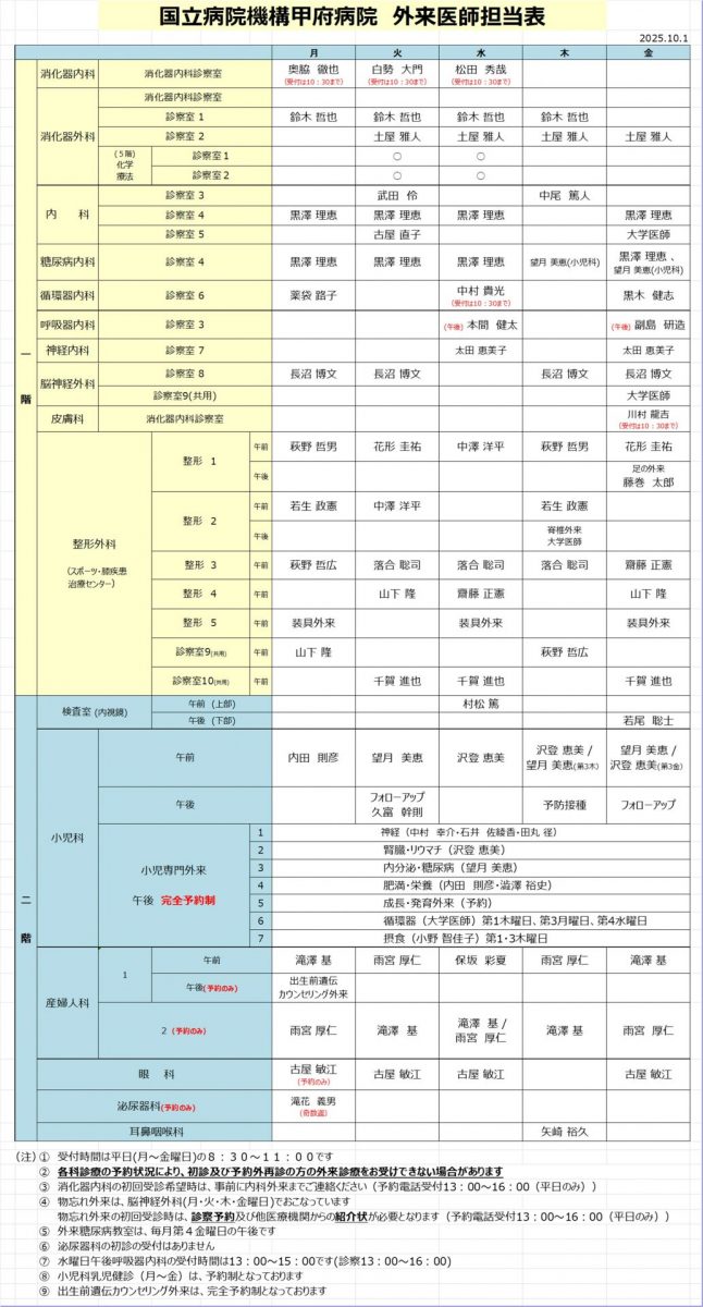 - 各診療科の予約状況により、初診及び予約外再診の方の外来診療をお受けできない場合があります