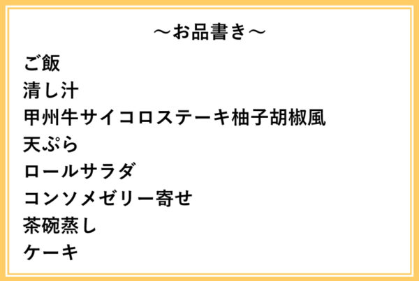 当院でご出産された方へ、山梨ブランドの「甲州ワインビーフ」を使用したステーキなど、調理師が全て手作りしたお料理にメッセージカードを添えてお出ししています。